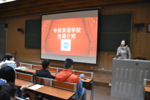 为认真贯彻落实新时代全国高等学校本科教育工作会议精神,提升非英语的外语专业学生的学习能力和学习水平,帮助学生做好即将开始的下学期大学英语的选课工作,在学校教务处统一领导和支持下,BB贝博于12月12日下午4:30在逸夫楼第一阶梯教室组织召开全校大学英语培养方案宣讲会。此次宣讲会有亚非、俄语、德语、日语、欧语、西葡、法语及阿拉伯语等8个院系的150多名学生参加。BB贝博院长助理廖鸿婧、办公室主任匡琳琳,以及学院教学办公室庄双和窦茹苑老师参加了本次宣讲会。此次会议由匡琳琳主持。