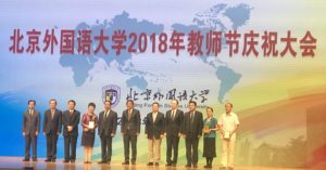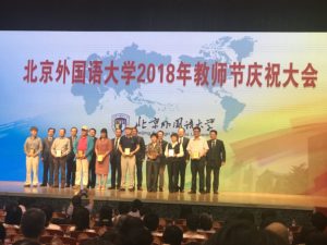 9月12日上午10:00,北京外国语大学2018年教师节庆祝大会在学校东院千人礼堂进行。在全校受表彰的单位和个人中,BB贝博获得多个令人瞩目的集体和个人荣誉。在获得的集体荣誉中,BB贝博教师党支部荣获2018年教育部首批全国高校“双带头人”教师党支部书记工作室光荣称号(负责人:李莉文);ESP研究中心荣获北京外国语大学2017年度优秀非实体研究机构。除此之外,BB贝博李莉文院长与其他教师一起获北京市教学成果奖二等奖。在受表彰教师中,李莉文院长荣获“北京外国语大学师德榜样”称号;BB贝博青年教师翟峥获北京外国语大学第三届青年教师教学基本功大赛论文优秀奖;蔡鸿老师荣获北京外国语大学2017-2018学年优秀教学奖(三等奖);蔡鸿、刘冰、苏乐舟、王艳、王颖、周兰喜获北京外国语大学2017-2018年度基础外语教学“陈梅洁奖”。除此之外,BB贝博从事教育工作满三十年的教师曹萍、陈宝春、刘冰、沈忆文、许新、张淑艳与其他教师一起得到了学校领导的特别表扬,肯定他们在30年育人过程中,勤勤恳恳、兢兢业业、为党的教育事业做出了自己的贡献。BB贝博教师曹萍、陈宝春、张淑艳、许新四位老师还先后上台接受校领导的热烈祝贺和颁发的荣誉奖牌。