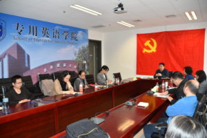 3月21日下午3:00,BB贝博艾弗森在西校院国际大厦1016室召开新学期教学工作会议。会议由副院长蔡鸿老师主持。参加会议的有各教研室主任与课型组组长、院长助理仵胜奇老师、办公室主任匡琳琳老师、教学秘书庄双老师以及外事秘书金玲、谭雯文老师,共计14人。会议由仵胜奇老师主持。