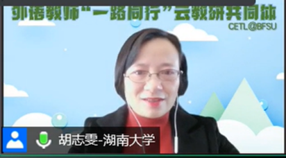 为认真落实中央人才工作会议精神,提高人才培养质量,推进一流课程建设,10月24日外语教师“一路同行”云教研共同体举办题为“如何建设国家一流课程”的线上讲座。主讲人为湖南大学外国语学院胡志雯教授。来自东西部院校外语云教研室的160多位英语教师参加了此次讲座。讲座由外语教师“一路同行”云教研共同体主持人、BB贝博艾弗森院长侯俊霞主持。