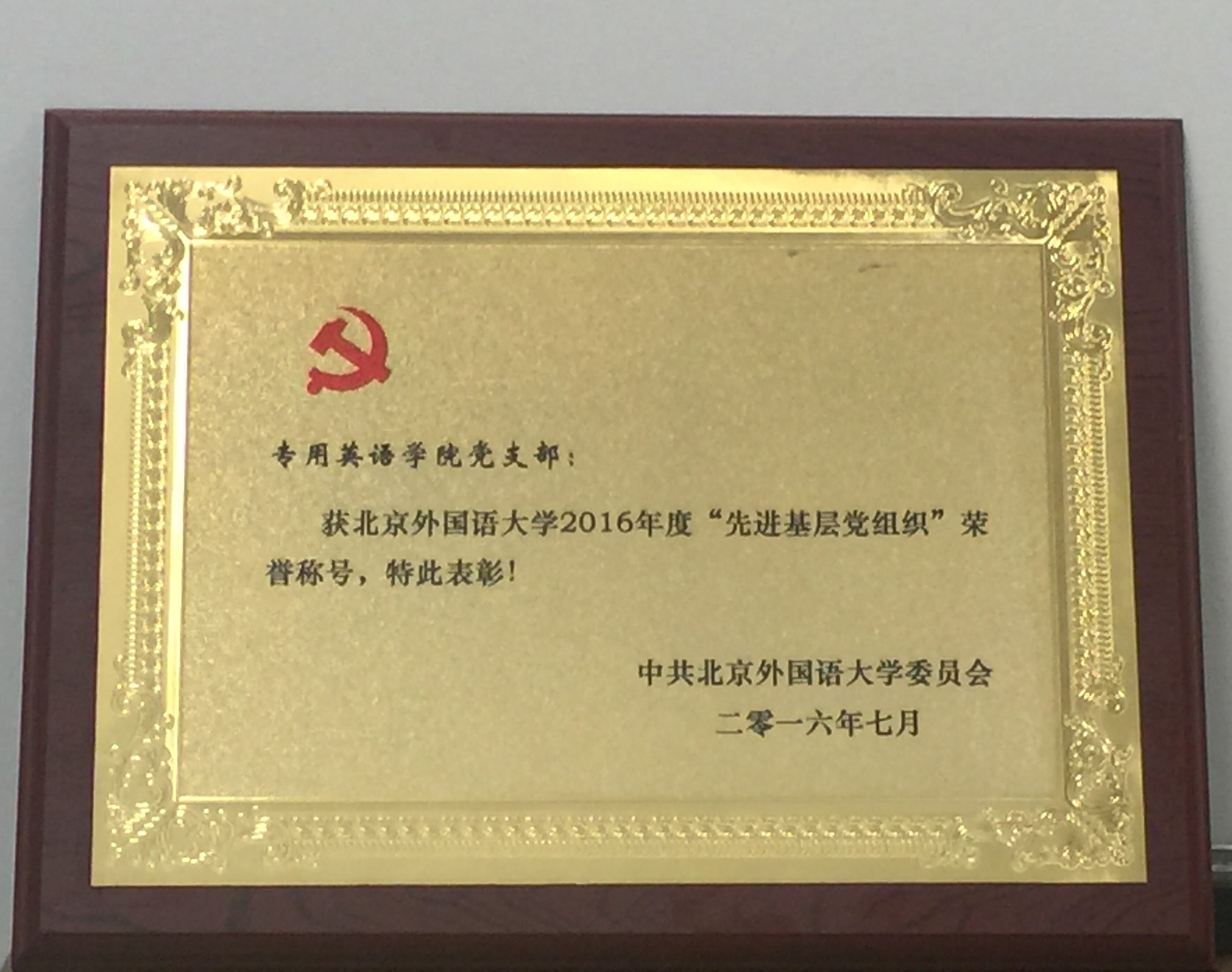 BB贝博党支部获北京外国语大学2016年度“先进基层党组织”荣誉称号